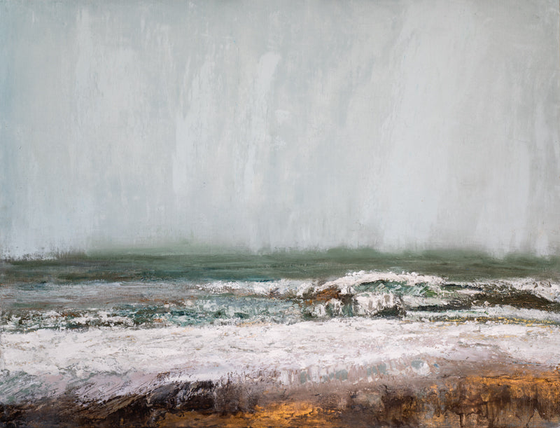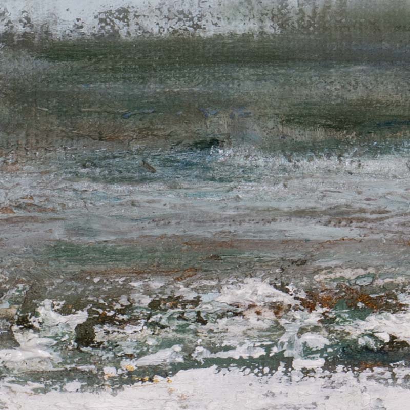 There are days in winter when it's cold and misty and everything seems craggy, like being in a prehistoric land. This layered, textured painting describes those times.