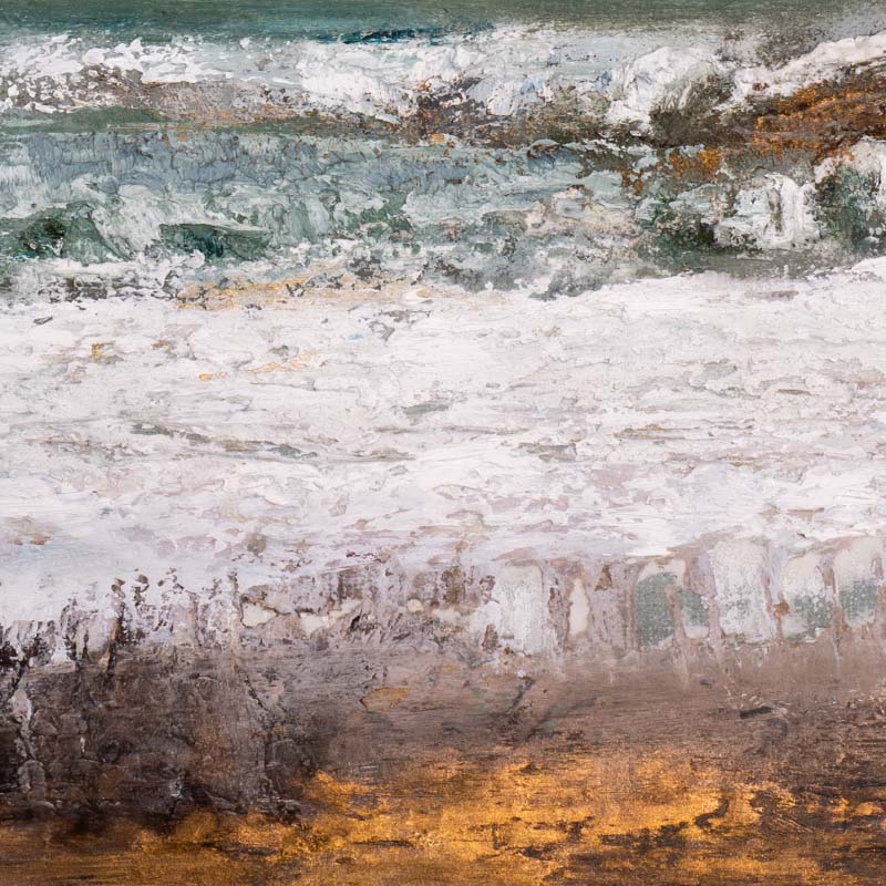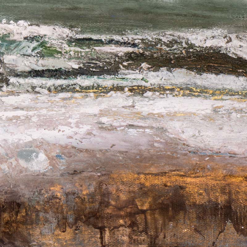 This painting has glints of copper and is highly textured. It would look good in most colour schemes and would benefit from a light position in which the glints of copper pigment become even more of a feature.