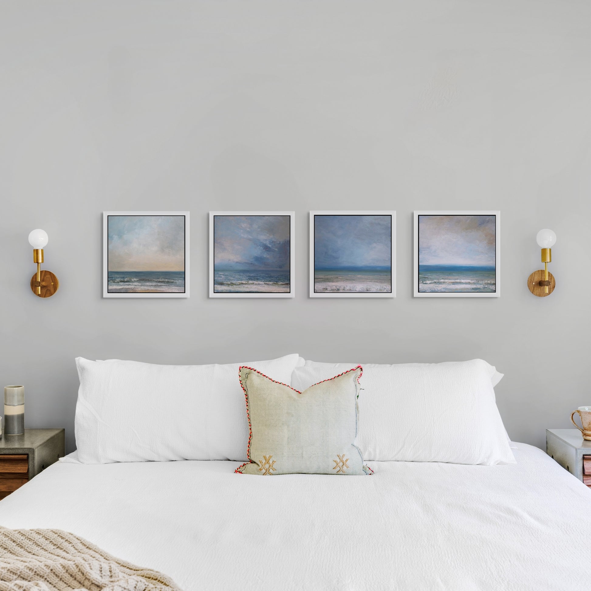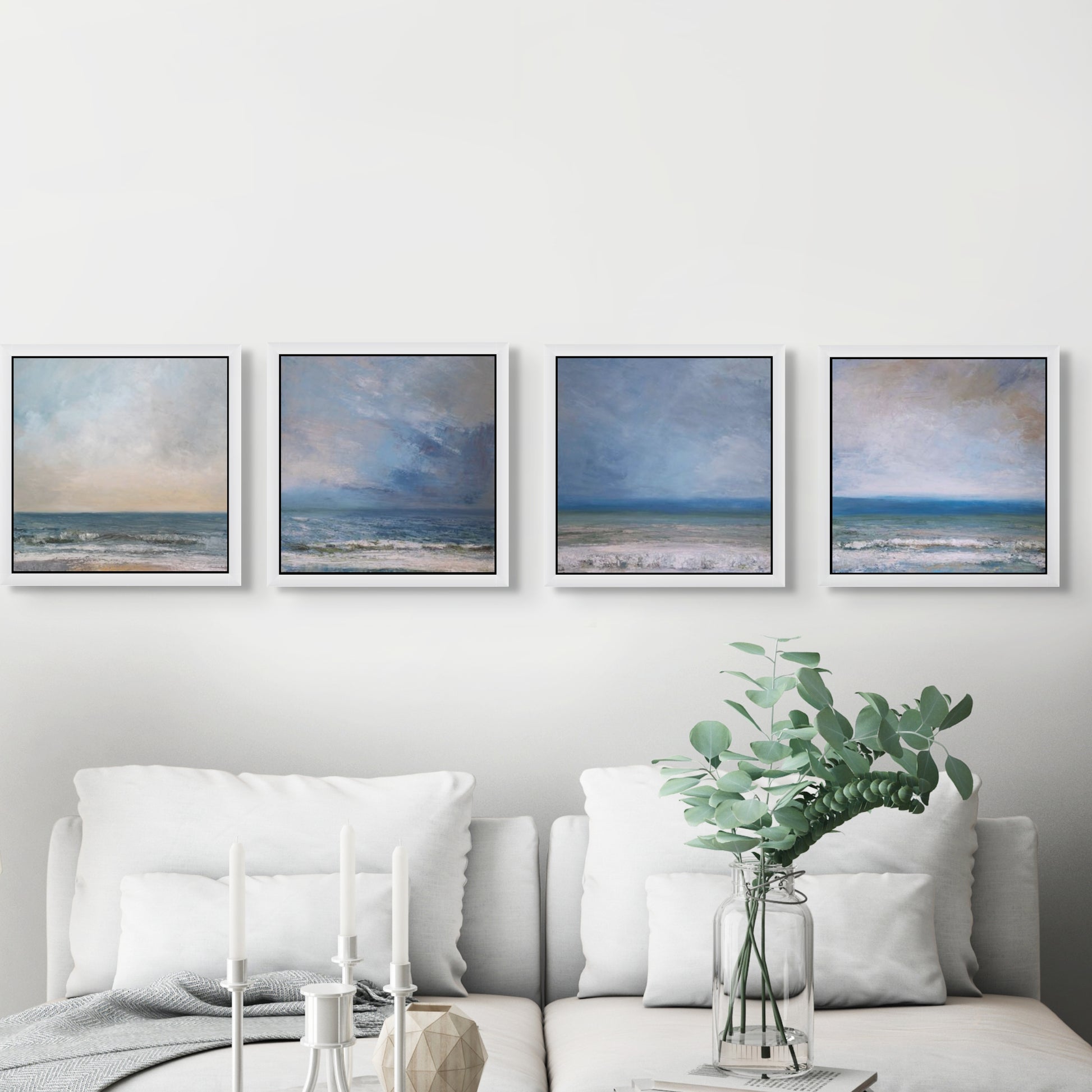 I'm often amazed at how many different skies there can be in one sky. As I scan across the horizon the light can change so much from one side to the other. These paintings are inspired by these changes.