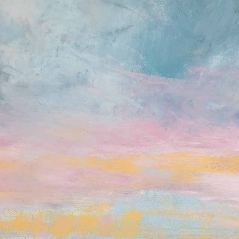 I love my daily walks on the beach with my do because the light and the sea always show me new magical things. Spring took a long time to come this year. On one such morning I so hoped for the warmth of spring but it was still cloudy and stormy. A tiny band of yellow hung below the clouds and I visualised the strong colours of spring there in an effort to make spring happen for me.