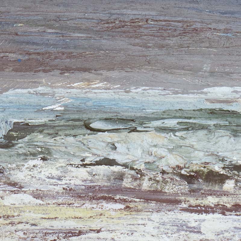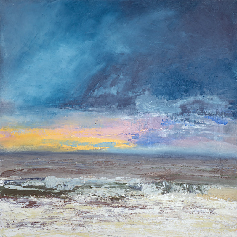 A smaller study of a larger painting in the collection. These smaller paintings are infused with energy and emotion and look good in any setting. they are very textured at the bottom and the sea has a frothy fast paced feeling to it.